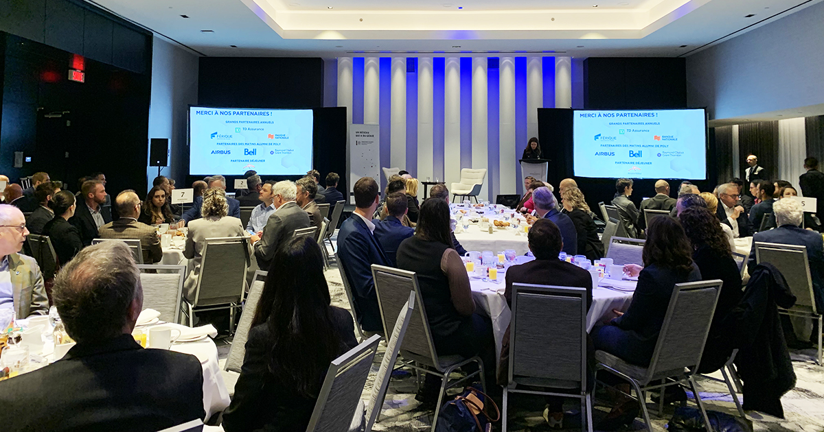 Trois Matins Alumni de Poly ont notamment permis aux participant(e)s de rencontrer et d’entendre des figures importantes dans l’industrie dans laquelle elles évoluent, exposant ainsi des enjeux dans des domaines diversifiés où le génie occupe une part importante de leur succès : Benoît Schultz, président-directeur général d’Airbus Canada; leader d’un réseau mondial dans l’aéronautique au Canada, a dévoilé les grandes ambitions et les investissements de la société, notamment pour la montée en cadence de la production de ses avions commerciaux A220 au Québec, et a partagé sa vision pour faire face aux défis de décarbonation qui concernent tous les joueurs de l’industrie. Airbus Canada célébrait alors son 5e anniversaire et son 15e anniversaire du lancement du Programme A220; Germain Lamonde, Po 83, fondateur et président exécutif du conseil d’EXFO, a livré son regard sur le secteur critique que sont les télécoms, de ses transformations et de l’impact de la 5G. M. Lamonde a fait découvrir l'impact socio-économique d'EXFO et a fait ressortir le rôle crucial de ses innovations au sein de cette industrie, mais aussi pour les entreprises et l’économie en général, et Serge Gendron, Po 73, président exécutif du conseil du Groupe AGF qui, lors d’un panel en compagnie de Mme Maud Cohen, Po 96, directrice générale de Polytechnique Montréal, a partagé la recette d’un succès familial, alors que le groupe fêtait son 75e anniversaire en 2023, mais aussi sa vision d’avenir en dévoilant des chantiers d’envergure internationale ainsi que son positionnement face aux normes ESG en réponse aux enjeux climatiques.