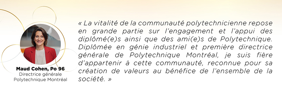 Nous sommes très reconnaissants de la mobilisation historique de notre indéfectible communauté polytechnicienne qui nous a permis de concrétiser notre vision commune de l’avenir : outiller nos génies pour bâtir ensemble un monde meilleur. Leur générosité, solidarité et dévouement nous ont permis de soutenir encore plus d’étudiant(e)s de Polytechnique Montréal dans l’accomplissement de leurs études universitaires, ainsi que dans la réalisation de nombreux projets novateurs.