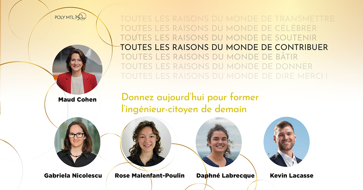 Si vous souhaitez contribuer à cette campagne annuelle, il n’est pas trop tard de faire un don et d’apporter une aide significative à des milliers d’étudiant(e)s de Polytechnique Montréal. Pour faire un don.