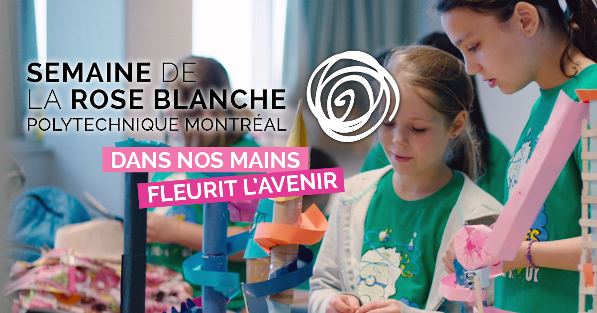 Créée en 2014, la Semaine de la rose blanche est une merveilleuse initiative au profit de Folie Technique, le camp scientifique de Polytechnique Montréal. Cette campagne de collecte de fonds vise à offrir à des jeunes filles issues de milieux défavorisés la possibilité de participer à des activités de sensibilisation aux sciences, aux technologies et au génie. Elle doit son nom au fait que les roses blanches sont devenues au fil des ans le symbole des commémorations du 6 décembre 1989 à Polytechnique Montréal.