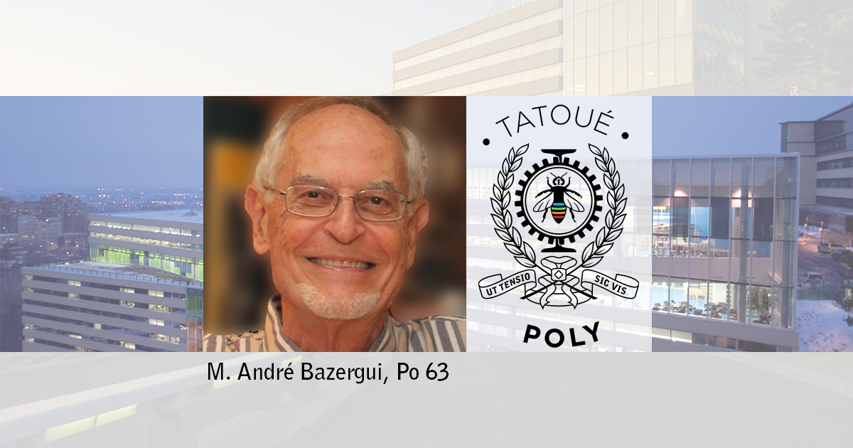 La Fondation et Alumni de Polytechnique Montréal est heureuse de décerner le titre Tatoué Poly à M. Bazergui pour son dévouement à la relève en génie et sa contribution durable au rayonnement de son alma mater.
